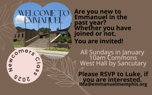 We would love to get to know you better and help you feel more connected to our church community! If you’ve recently joined Emmanuel within the last year, we invite you to join us for a special Newcomers Class during the month of January.