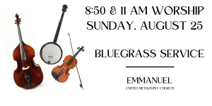 BLUEGRASS SERVICE August 25, 2024 Sanctuary Great Day of Singing! Special Bluegrass Services on Sunday, August 25th Join us in worship at 8:50am or 11am in the Sanctuary.