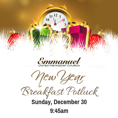 New Year’s Breakfast Potluck December 30, 2018 9:45 am – 10:30 am (During Sunday School) We are celebrating New Year’s early during Sunday School at 9:45am on Sunday, December 30. Bring a breakfast dish to share.