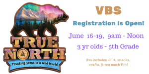 VBS June 16-19 We have Jesus—our true north! Kids will encounter a rock-solid foundation and pointing them to Jesus, their unmovable, unshakable friend forever!