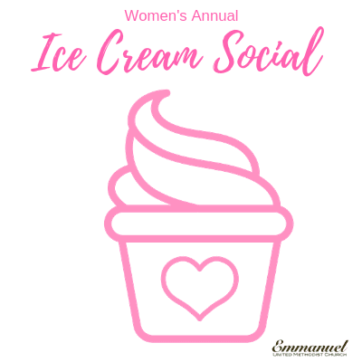 Women’s Annual Ice Cream Social July 27, 2019 2:00 pm – 4:00 pm Jocelyn's home All women of Emmanuel are invited to our Annual Ice Cream Social. We will meet at Elizabeth Johnston’s for ice cream and socializing on Saturday, July 27, from 2-4pm. Call the church office for directions, if needed.