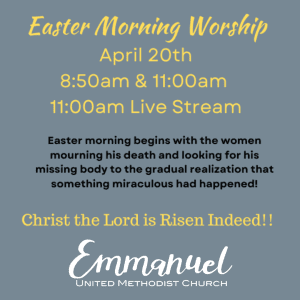 Join in the celebration of Easter in the Sanctuary on April 20, at the 8:50am or 11am services or online at 11am.
