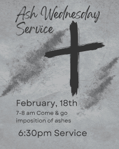 Ash Wednesday February 18, at 6:30pm